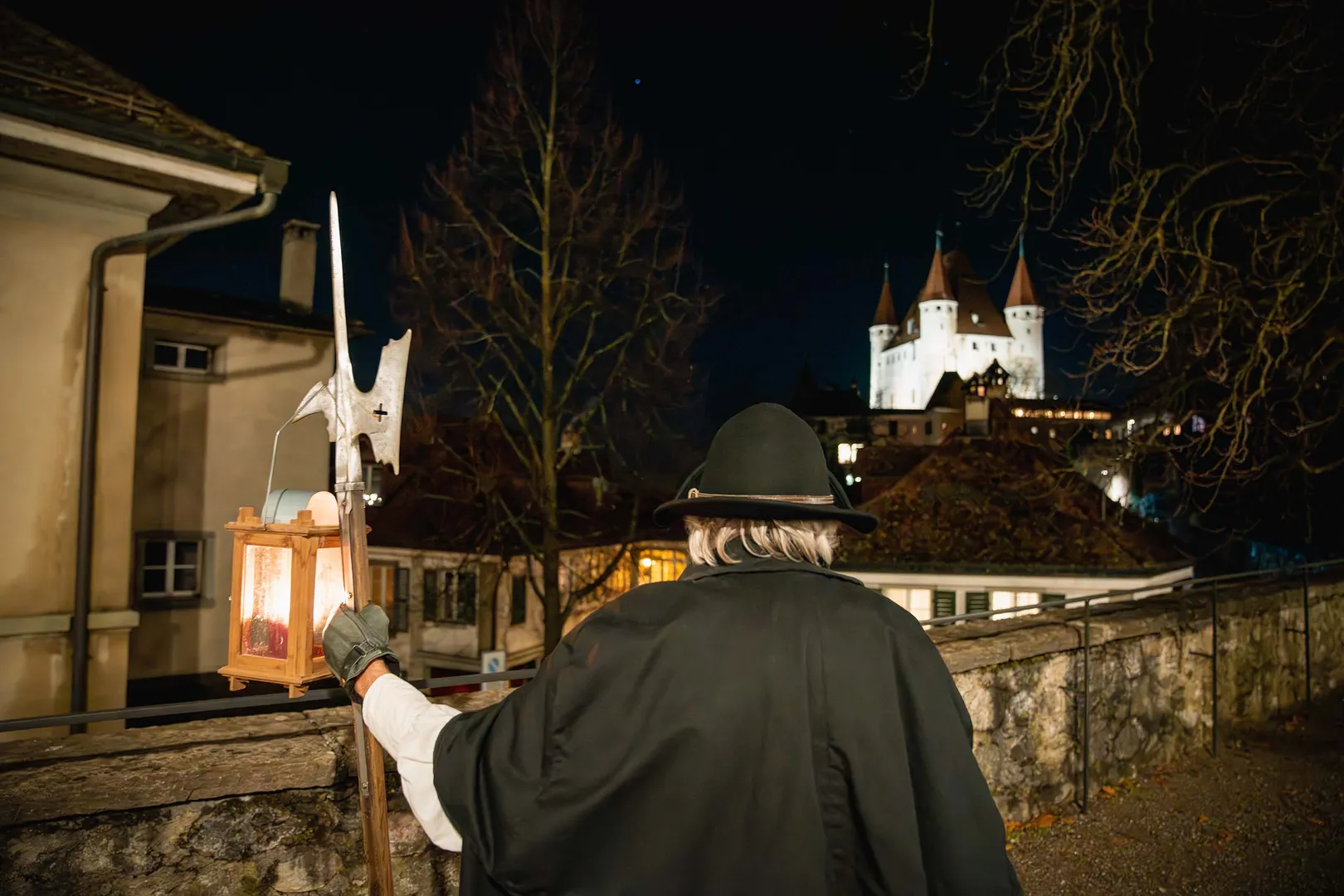 Öffentliche Themenführung «Unheimliches Thun – der Nachtwächter erzählt» (de) Begleite den Nachtwächter während Neu- oder Vollmond durch Thuns dunkle Gassen und entdecke geheimnisvolle Geschichten.